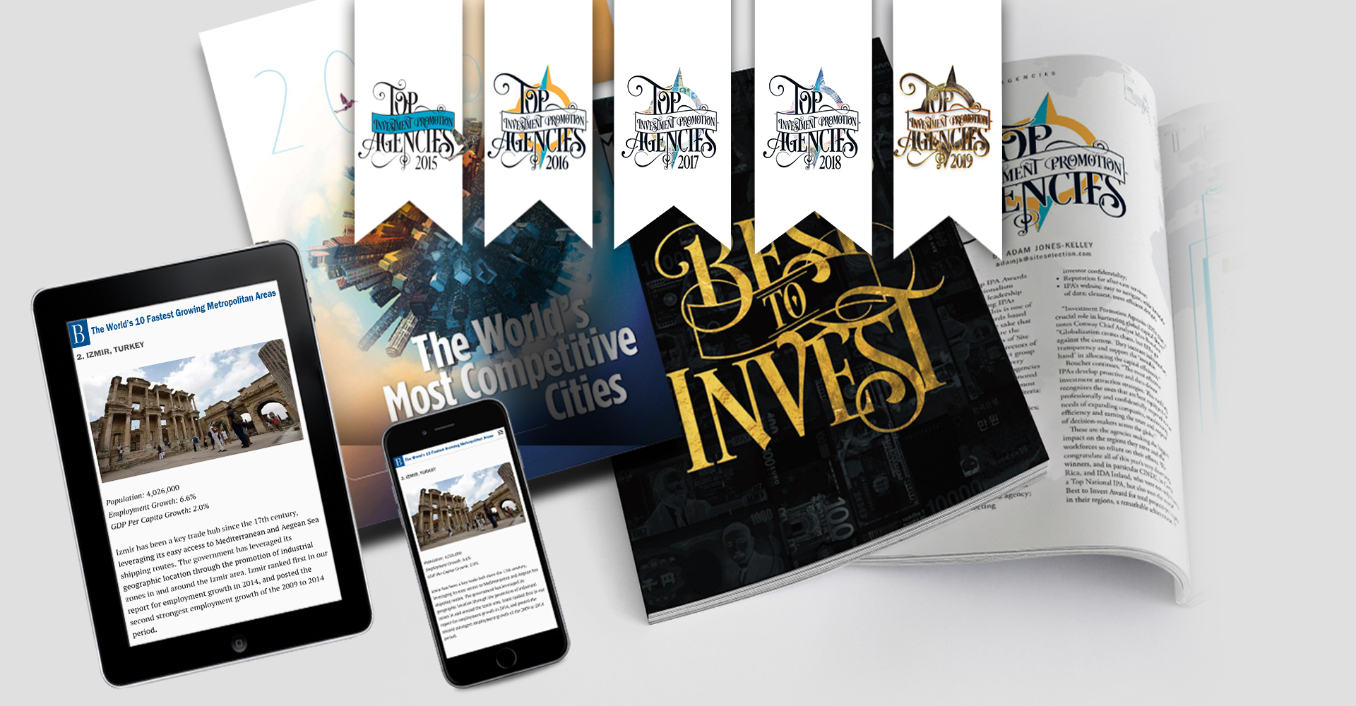 Invest in İzmir has been awarded as one of the Best Regional Investment Promotion Agencies in Eastern Europe and Central Asia by Site Selection Magazine , five years in a row.